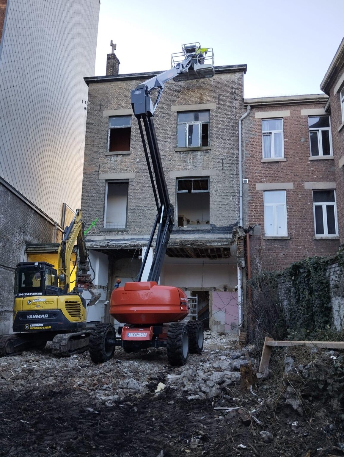 Nos équipes sont intervenues au cœur de Liège pour la déconstruction manuelle et mécanique d’une maison de maître mitoyenne, dans un environnement urbain particulièrement contraint. 🏗️