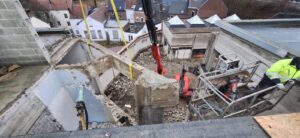 Sur ce chantier, nos équipes étaient intervenues suite aux inondations pour sécuriser et préparer le site avant d’engager une déconstruction méthodique du gros œuvre. ![]()