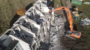 Après une phase de mise à blanc (curage) et de désamiantage, nous avons procédé à la déconstruction mécanique des structures.