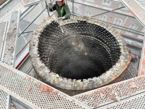 En plein cœur de la Cité ardente, pour le compte de la Ville de Liège, nos équipes ont procédé au démontage méthodique d’une cheminée industrielle en brique d’une hauteur vertigineuse !