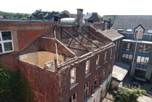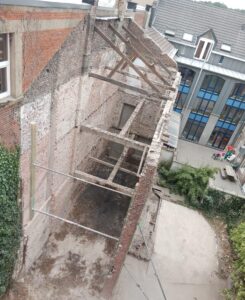 À l’intérieur d’une cour du côté de Verviers, nos équipes ont réalisé le curage complet (mise à blanc) et la déconstruction partielle d’un bâtiment mitoyen. 🏗️