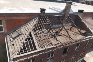 À l’intérieur d’une cour du côté de Verviers, nos équipes ont réalisé le curage complet (mise à blanc) et la déconstruction partielle d’un bâtiment mitoyen. 🏗️
